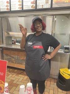 The cashier at Arby’s, Khadija Reeves, was so sweet. I told her about the wet phone and being coffeeless for 9 miles, and told me I was welcome to stay at Arby’s all day if I wanted to, and she pointed me to TMobile, coffee, and actually got the rice out of my connector after TMobile person recommended using rice. My cell battery was almost dead, and I couldn’t charge phone, and didn’t know the address back to the house to Uber.